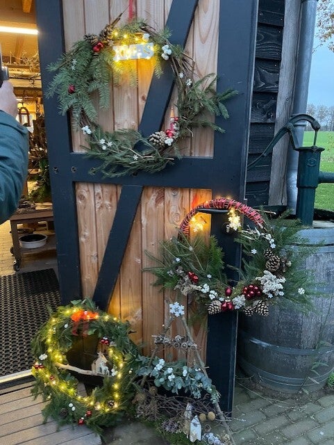 De workshops voor dit jaar zitten er bijna weer op. We hebben een aantal hele gezellige, inspirerende en enthousiaste groepen op bezoek gehad voor het maken van kerstdecoraties, kransen en huisjes van hout.